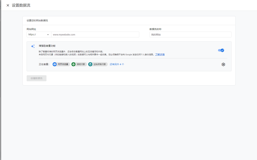 现在让我们最终向您的新GA4媒体资源添加Web数据流。